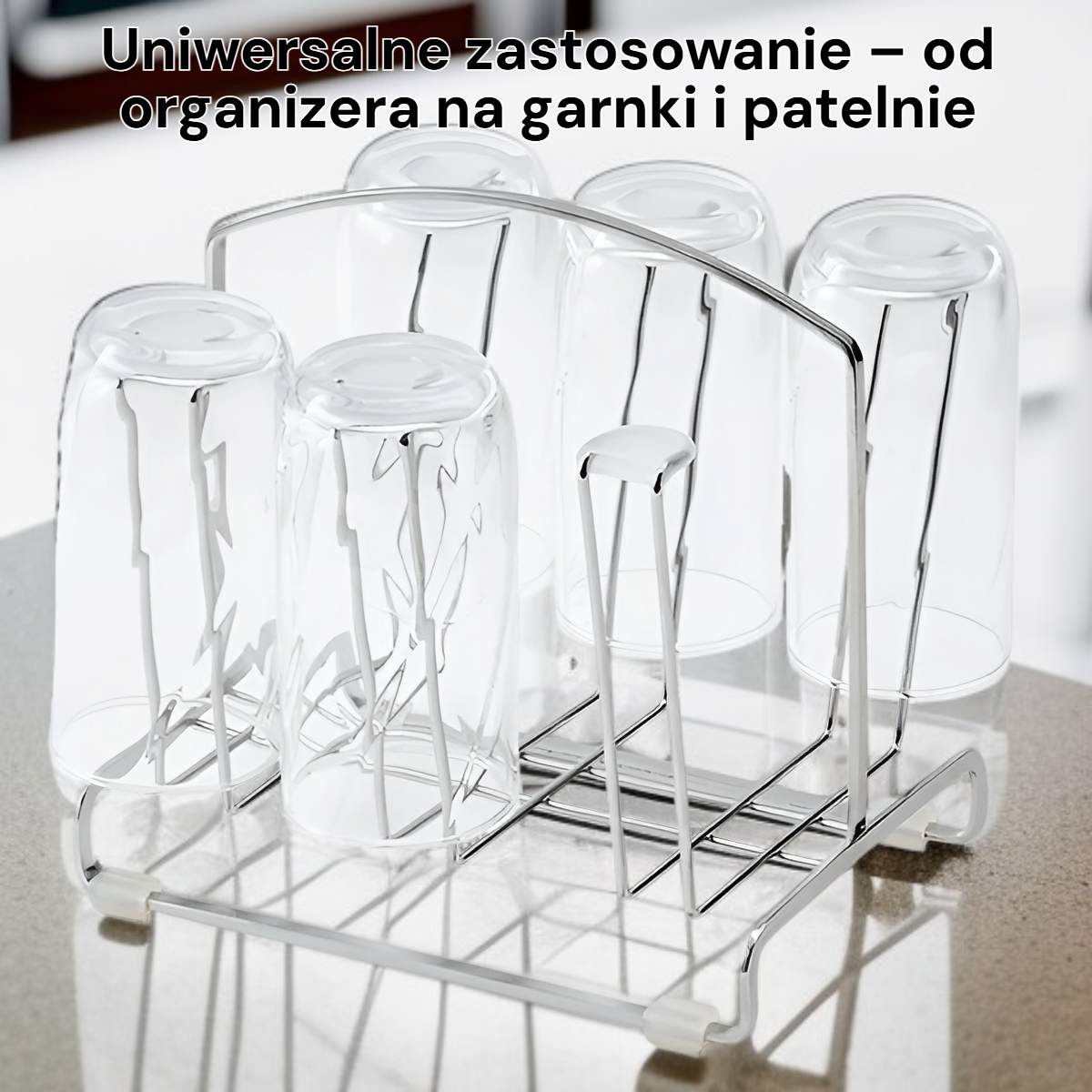 ● Uniwersalne zastosowanie – od organizera na garnki i patelnie, po uchwyt na gąbki i szmatki – pozwala na wygodne przechowywanie wszystkich najczęściej używanych przedmiotów kuchennych w jednym miejscu.