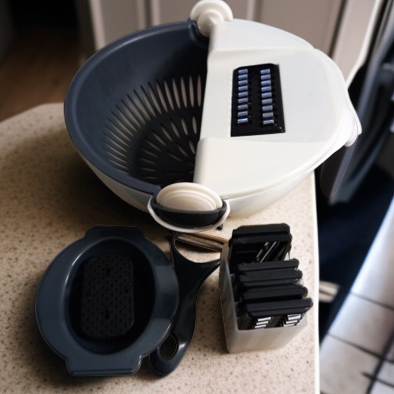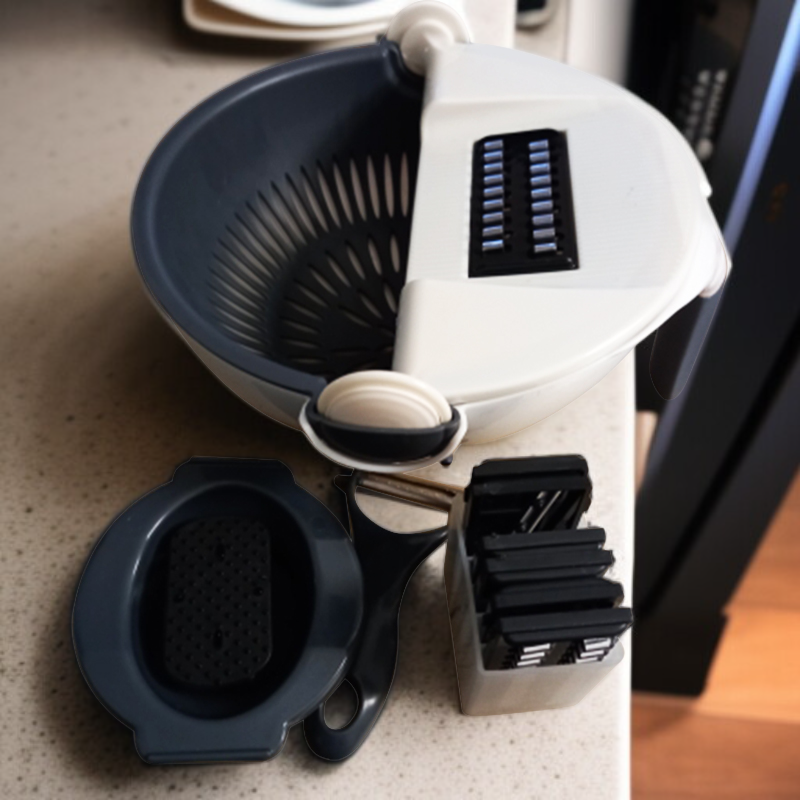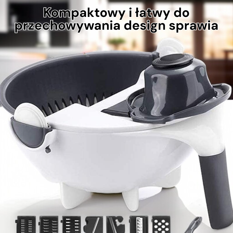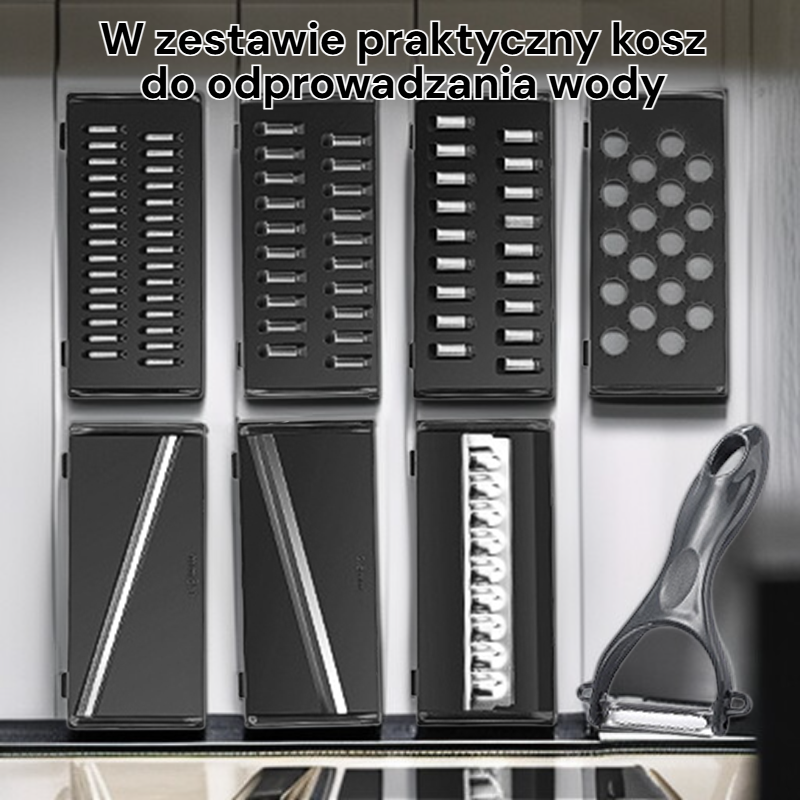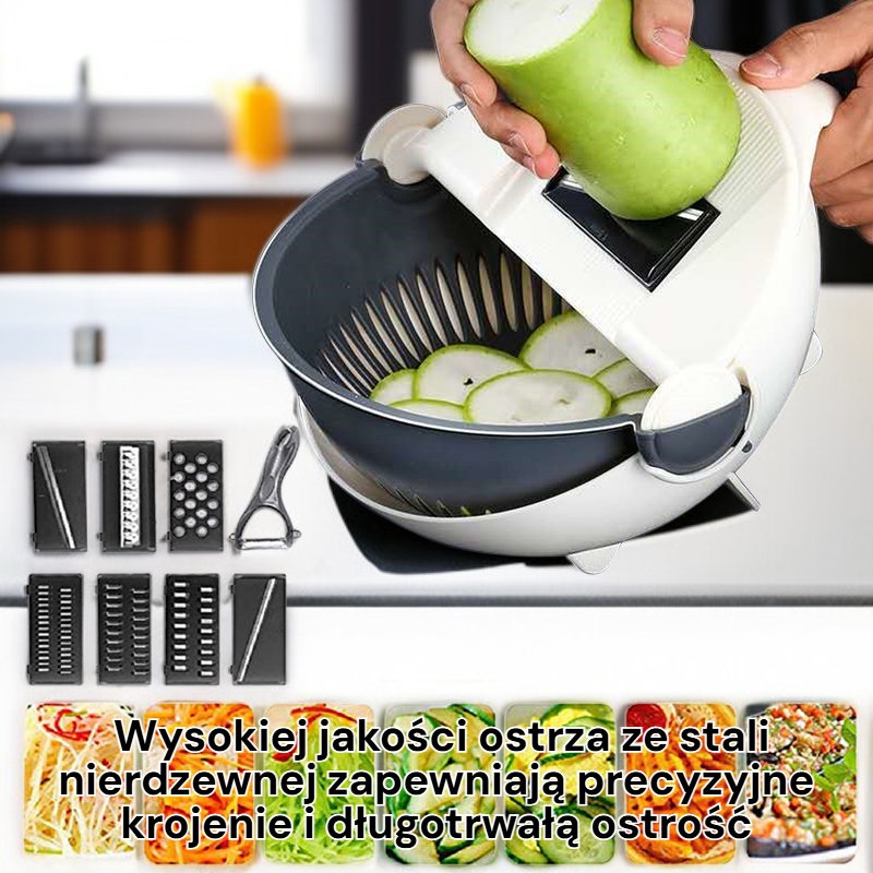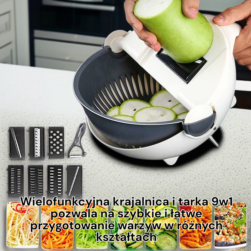 Wielofunkcyjna krajalnica i tarka do warzyw 9w1 z koszem do odprowadzania wody